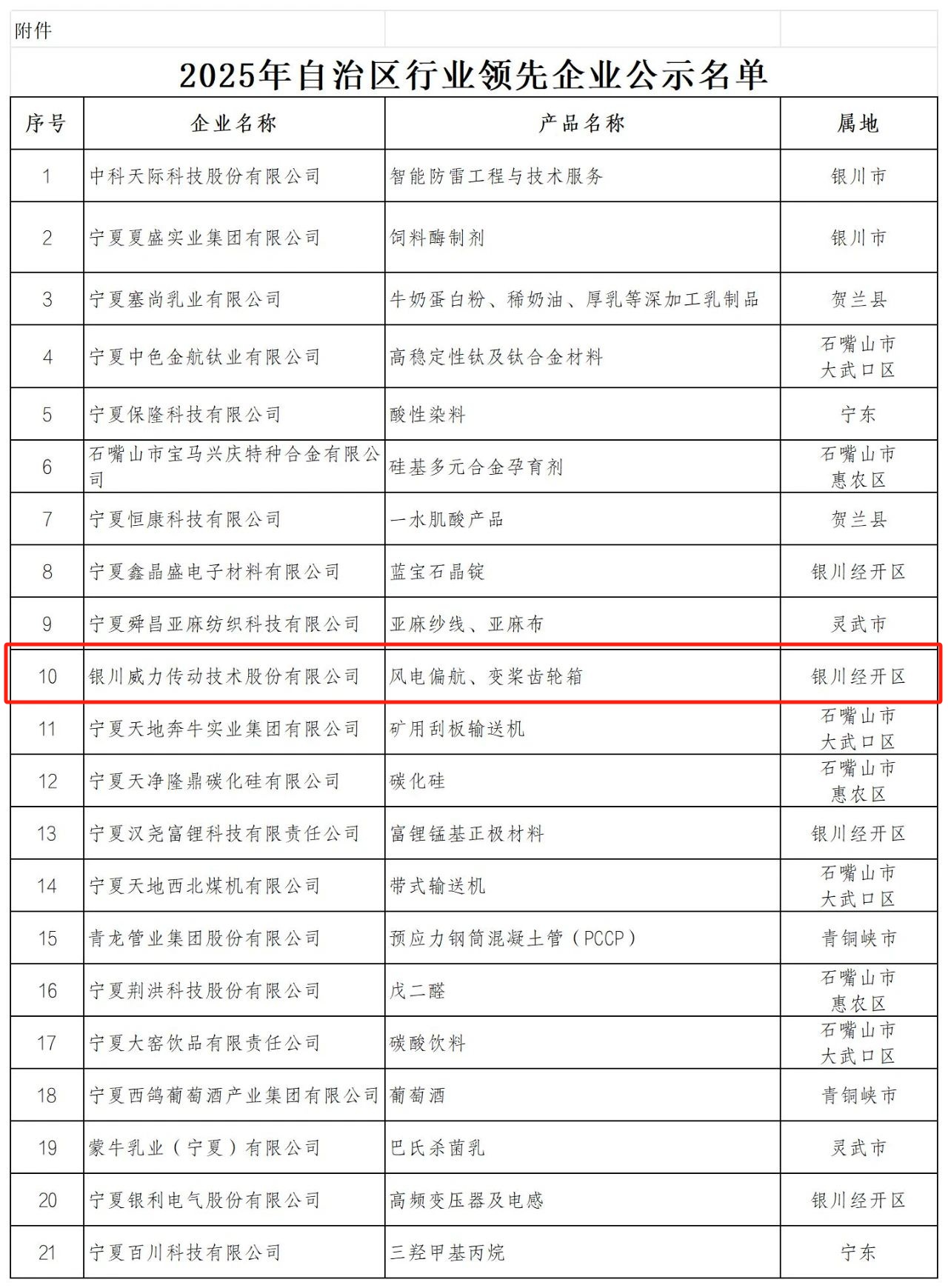 喜訊 | 威力傳動榮膺2025年自治區(qū)行業(yè)領先企業(yè)